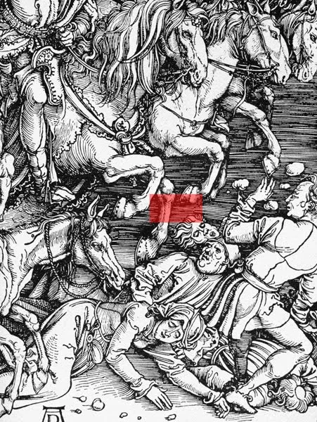 Albrecht Dürer, details from Four Horsemen of the Apocalypse, woodcut, circa 1497-98