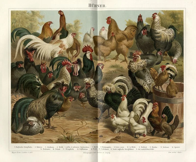 illustrator uncredited, Hühner(Chicken Breeds), Meyers Lexicon, 1894