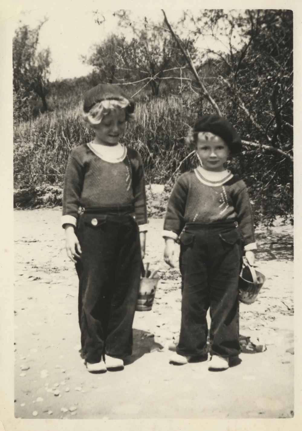 Here, with her big sister Judy. Is she killer in that beret, or what?